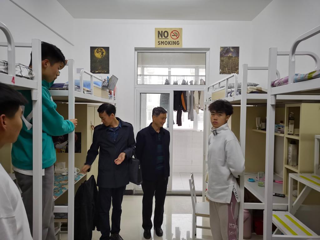 在员工宿舍,各位领导对员工的住宿环境、内务卫生、安全保障等进行了细致的检查,与同学们进行了亲切的交流,听取了同学们对宿舍和生活设施的意见,询问了学习、生活情况,了解员工思想动态,并对员工宿舍环境卫生、宿舍文化建设、宿舍学风建设等进行了现场指导。同时叮嘱同学们在平常的生活中,要严格遵守学校和公寓管理规定,务必注意财物安全、用水用电安全、人身安全,加强内务清理管理,保持宿舍环境卫生,主动打扫宿舍卫生并将垃圾随手携带出宿舍楼扔在规定的垃圾存放区域;勉励同学们勤奋学习、努力向上,培养良好的生活习惯,营造良好的学习氛围,做一位文明的老员工,为今后更好地适应社会打下坚实基础。