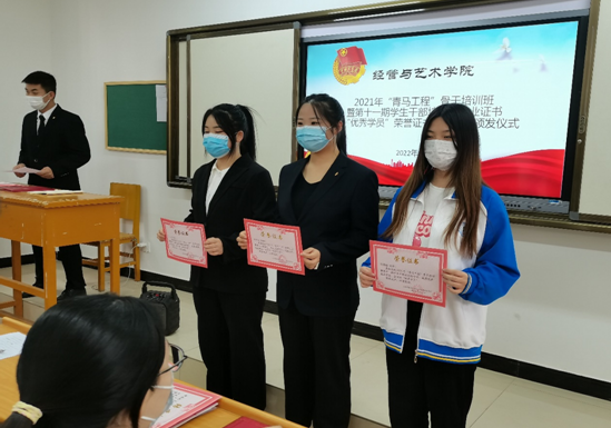 接下来颁发青马工程“结业证书”和青马工程“优秀学员”证书。