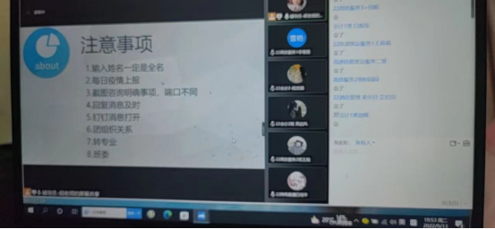 9月13日晚自习期间,2022级新生各班班主任、辅导员通过线上平台,为员工开展了“开学第一课”主题班会。