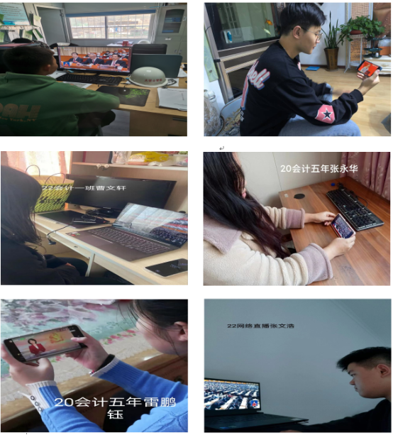 同学们全神贯注倾听报告,认真记录笔记,并在会后第一时间分享交流收看大会报告的心得体会。