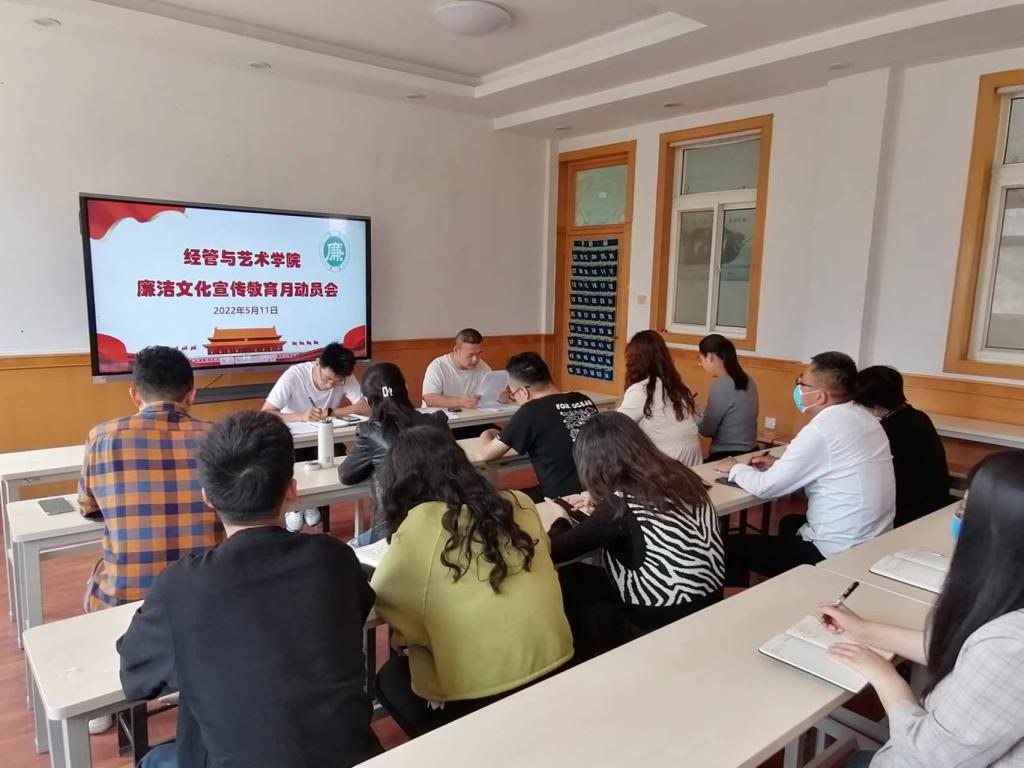 2022年5月11日,bevictor伟德官网全体教师在经管建筑二楼会议室参加廉洁文化宣传安全教育月动员学习会。