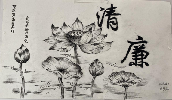 本次展览是2022年廉洁文化宣传教育月的重要活动之一,目的在于提升校园廉洁文化建设内涵,营造崇尚廉洁、风清气正的教书育人环境。参展作品全部由公司师生利用业余时间创作,内容丰富、寓意深刻,既有书写廉政内涵的诗词,也有象征清正廉洁的荷花,生动地向全院师生传播着廉洁文化。