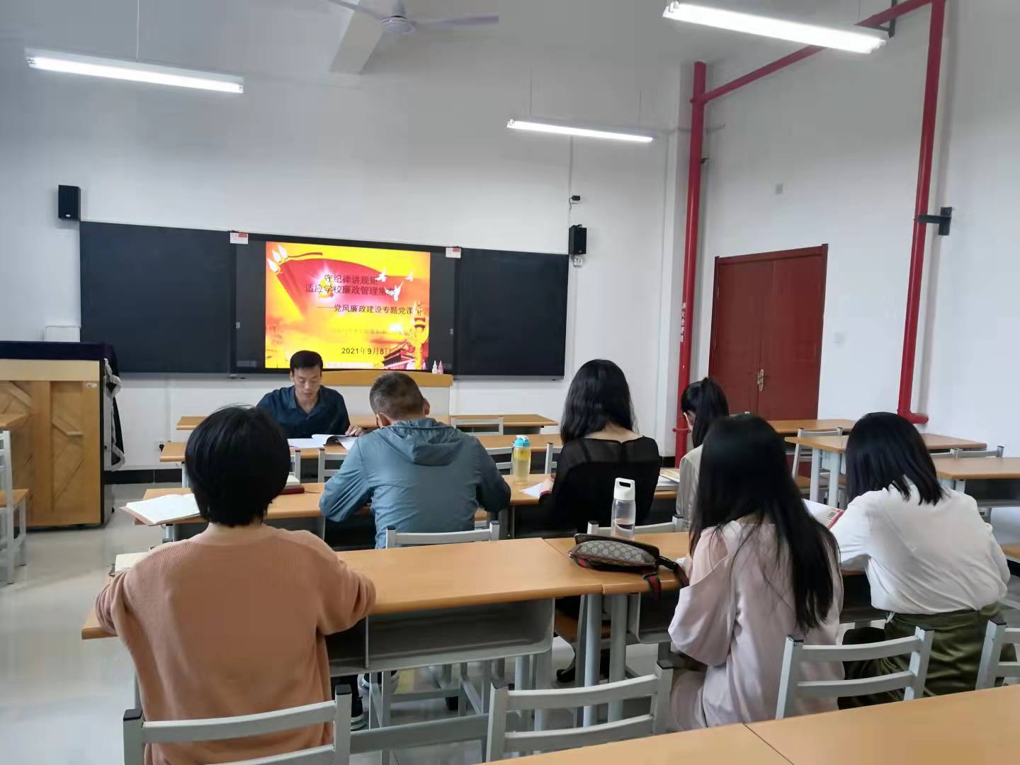 接下来,孟书记给全体党员讲了《守纪律、讲规矩、适应学校廉政建设》专题党课。
