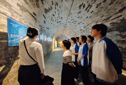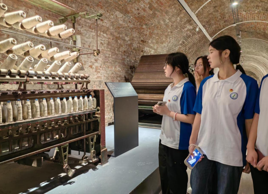 长乐塬抗战工业遗址,作为中国抗战时期的重要工业遗产,见证了民族企业在危难之际的坚韧与智慧。活动当天,“三下乡”社会实践团成员们从学校出发,抵达后,首先来到了窑洞车间,这是现存抗战时期全国最大的窑洞工厂,被誉为“中国抗战工业奇迹”。步入窑洞,一股清凉的气息扑面而来,洞内深邃悠长,细沙机、纱锭等实体遗存静静诉说着当年的生产场景。全息投影技术生动还原了工人前辈在窑洞内的生产情况,仿佛让人穿越时空,置身于那段艰苦卓绝的岁月。