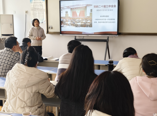 为深入学习贯彻党的二十届三中全会精神,2024年11月20日,bevictor伟德官网党支部邀请马克思主义学院教师朱莉为支部全体党员讲授了一堂以“党的二十届三中全会”为主题的党课。