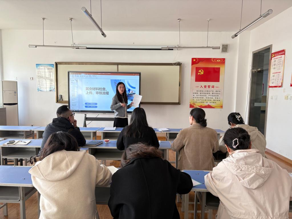 会议最后,学校就业处贺巧珍老师从员工就业材料的填写、上传及注意事项等方面为毕业班班主任老师做了专题培训。