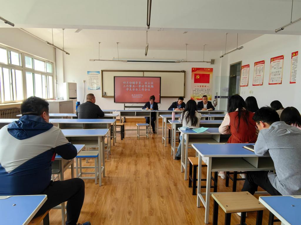 接着,孟发军对“五一”假期安全工作做了要求。一是要加强假期安全教育,各位辅导员、班主任老师要及时召开安全教育主题班会,做好防溺水、交通安全、防诈骗等方面的安全教育;二是要做好员工管理服务工作,精准掌握离校员工“五一”劳动节期间的去向和动态,做好重点员工日常管理工作;三是各位辅导员、班主任老师假期要保持联系畅通,确保异常情况及时汇报。