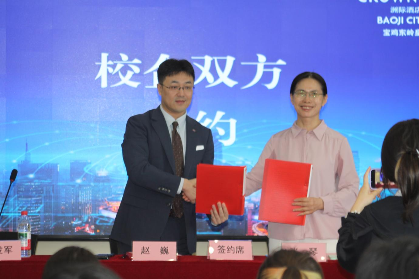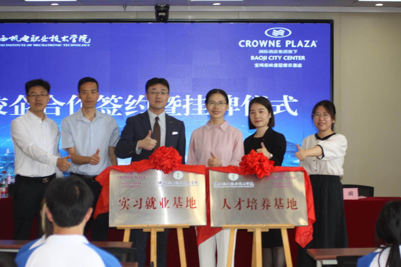 接着,张琴和赵巍为韦德官方网站在宝鸡东岭皇冠假日酒店的“就业实习基地”和宝鸡东岭皇冠假日酒店在韦德官方网站的“人才培养基地”揭牌,并进行校企合作签约仪式。