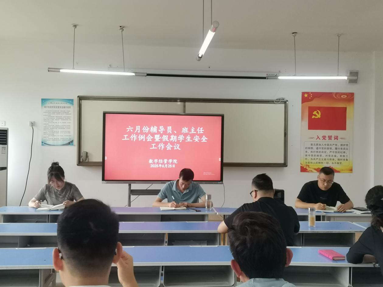 2025年6月25日下午,bevictor伟德官网在宝福路校区电子信息大楼2207会议室召开六月份辅导员班主任工作例会暨暑假员工安全工作会议。公司党支部书记孟发军、副书记刘娟、学工办主任杨涛出席会议,全体辅导员及班主任参会。会议围绕传达学校六月份学工例会精神、毕业生离校、暑期员工安全、毕业生就业推进、岗位实习管理等重点工作进行系统部署。