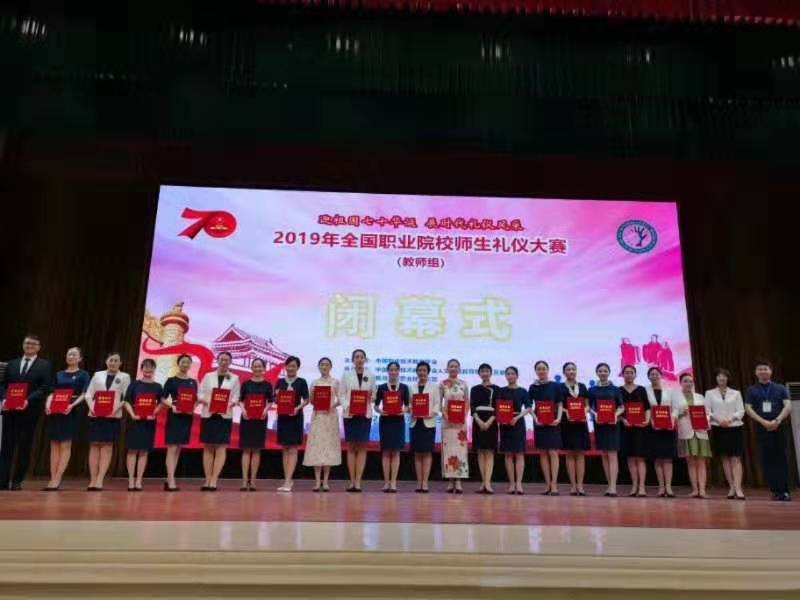 公司派出2名教师参赛,面对来自全国各个高校强大的对手,公司教师沉着稳定,表现出高昂的斗志。在指导教师邢平悉心指导下,教师认真备赛,在很短的时间内克服种种困难。公司教师在本次大赛中共获两个三等奖。总评严立琼老师获三等奖,礼仪教师武小元老师获二等奖,单项奖职业风采展示中武小元老师获三等奖。