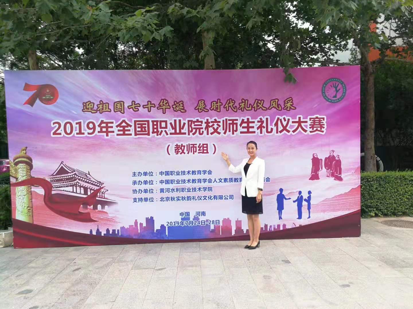由中国职业技术教育学会主办的“2019年全国职业院校师生礼仪大赛(教师组)比赛”于7月24至27日在黄河水利学院举行,共有来自全国25个省份60所职业院校的70名教师参加比赛。此次比赛分为知识竞赛、教师说课和职业风采展示三个项目,教师通过职业仪态展示、现场知识竞赛、现场说课等三大项进行了比赛。