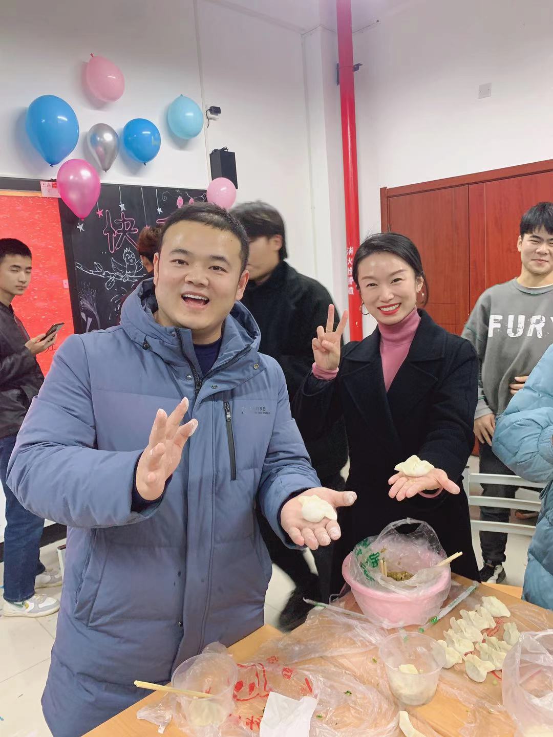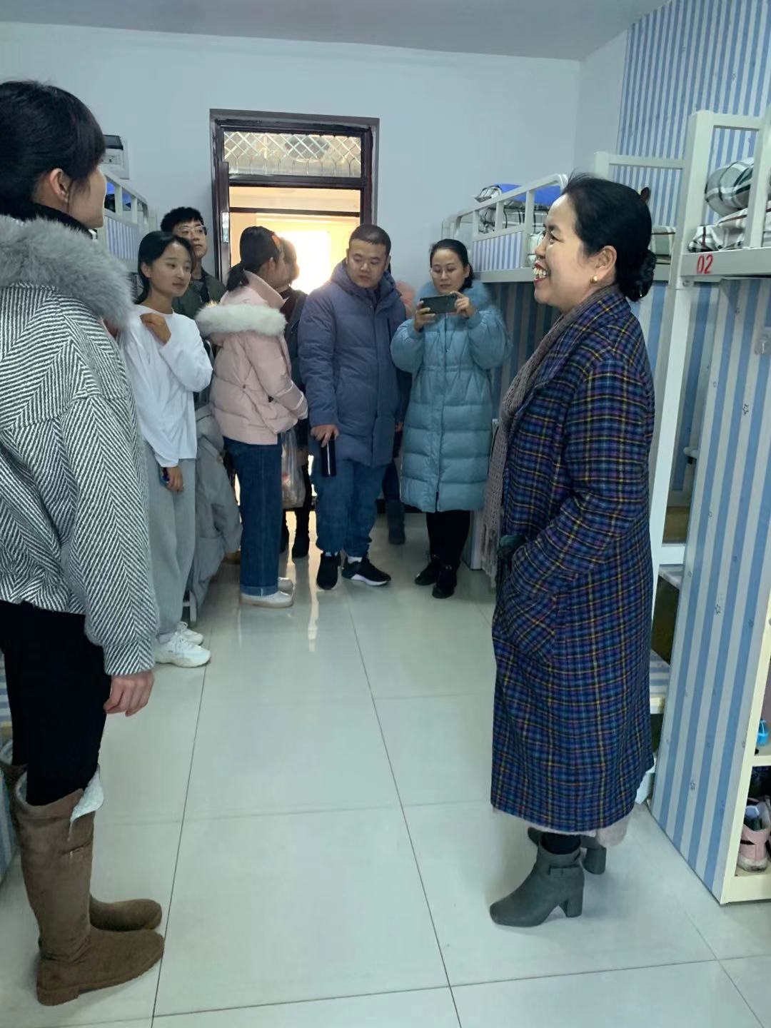 2020年12月21日bevictor伟德官网经理邢平与教师一起看望蟠龙塬20级新生,辅导员屈老师带领公司教师去员工宿舍,邢经理关心的询问员工在新校区的学习、生活以及饮食等问题,叮嘱员工临近期末抓紧时间复习备考的同时也要注意保暖,随后到教室与员工一起包饺子。