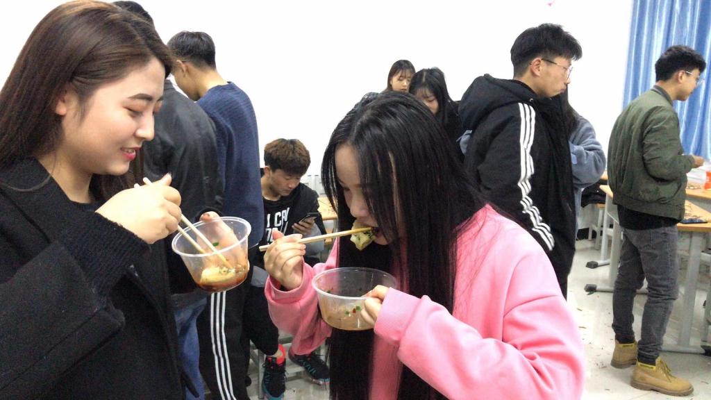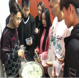 饺子的香气已经从锅里溢出来啦,薄薄的皮,包裹这饱满的馅料,同学们都已经等不急了,“快到碗里来”。