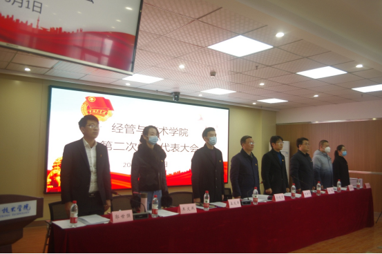 阳春三月天,疫散春花开。青春正当时,奋斗新征程。在全校上下深入学习宣传党的二十大精神,全体师生认真贯彻学校“十四五”五发展规划之际,2023年3月1日下午,bevictor伟德官网第二次员工代表大会在宝福路校区汽车机电大楼四楼会议室成功召开。公司党委副书记、纪委书记齐晓军,校团委书记杨鹏出席会议,经管与艺术公司党支部书记孟发军、经理杜海军,学院办公室主任李豪斌,系主任王文燕、严立琼,专职辅导员何睦、杨涛、胡馨月及全院教师与员工代表共计70余人参加会议。会议由学院学工办主任、团总支书记郭世强主持。大会分两个阶段进行。