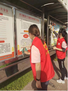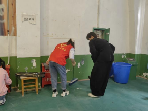 活动分三组进行。分别对宝福路校区大门口、羽乒馆、各处宣传栏进行了打扫净化。志愿者们在辅导员何睦、杨涛、胡馨月老师的带领下,发扬了不怕苦、不怕累、不怕脏的志愿服务精神。同学们有的拿着扫帚认真细致的清扫地面,对各种卫生死角的垃圾、杂物进行了彻底清理;有的拿着抹布对集团大门口标语、校内各处宣传栏、室外楼梯扶手、羽乒馆各种体育设施等进行了擦拭;有的在水房里为其他同学交替换洗清扫工具等。志愿服务活动场面热火朝天、干劲十足,同学们齐心合力、互帮互助,切实做到了打扫一处、清洁一处、靓丽一处。通过一个多小时的努力,校园内外变得干净整洁。
