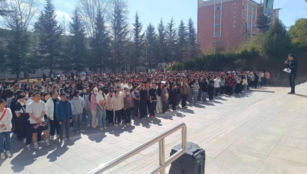 下午两点四十五分,随着警报的响起,广播中下达撤离指令,全体师生沿着预定的疏散路线快速撤离到指定区域集合。随后各班负责人清点人数,并向老师汇报,学院共计1000余名师生10分钟内安全疏散完毕。