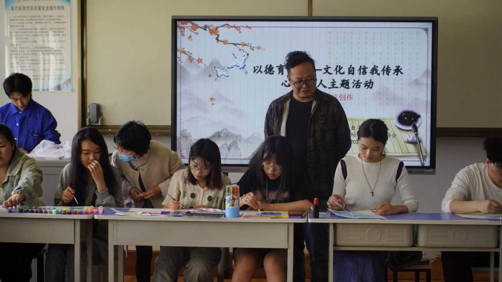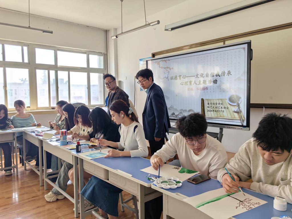 为切实推动学院员工心理健康发展,激发员工创作热情,舒缓员工心理压力,引导员工爱生活,展现阳光心态,用画笔记录春天的美好,展现青春姿态,4月17日下午公司联合鲸艺文创艺术协会开展“以德育心——文化自信我传承”之“定格青春”绘画创作活动,杜海军经理、绘画教师赵刚刚、鲸艺文创艺术协会指导教师董欢欢、专职辅导员老师何睦出席本次活动。