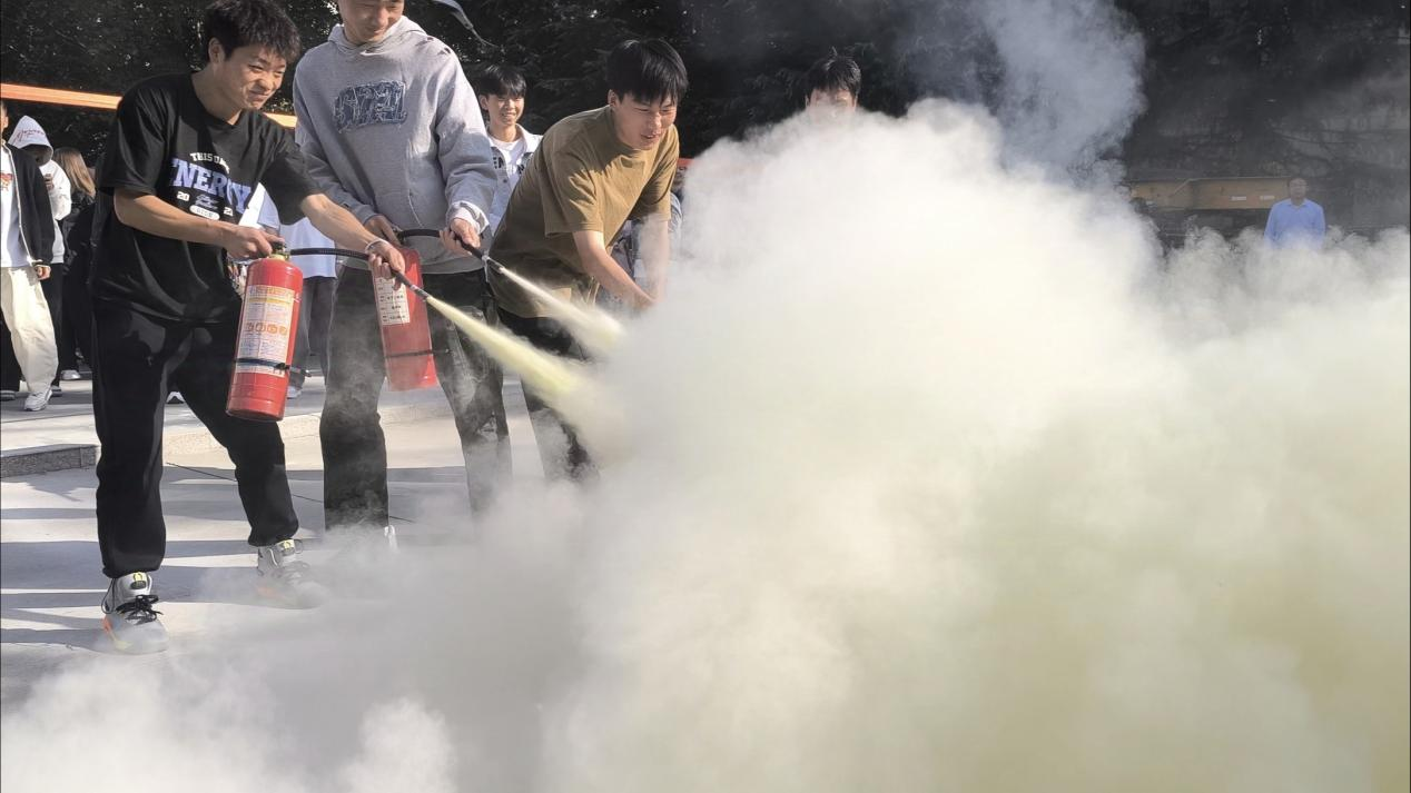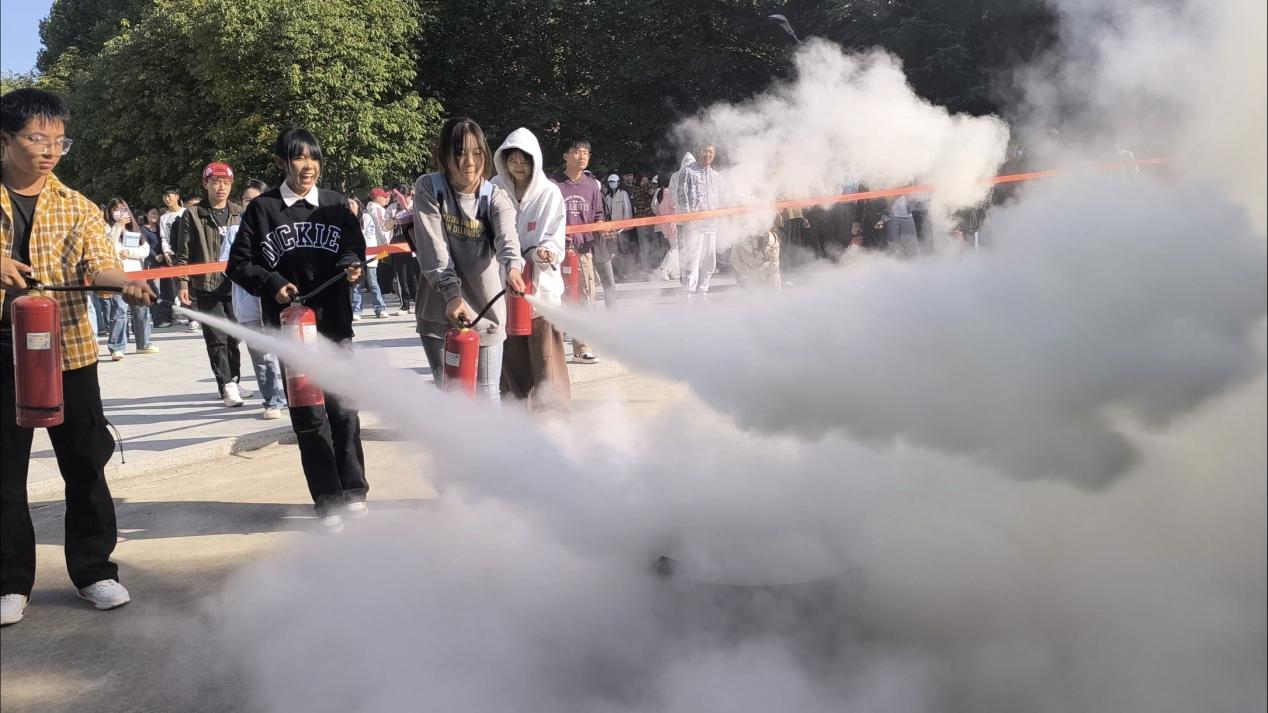 为确保演练安全有序进行且取得实效,学院邀请保卫处老师向全院师生讲解并演示了灭火器的使用方法,同时组织员工亲手操作灭火器开展灭火体验。