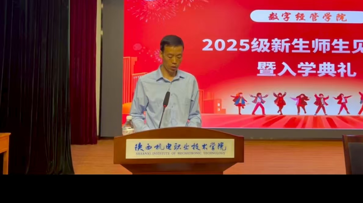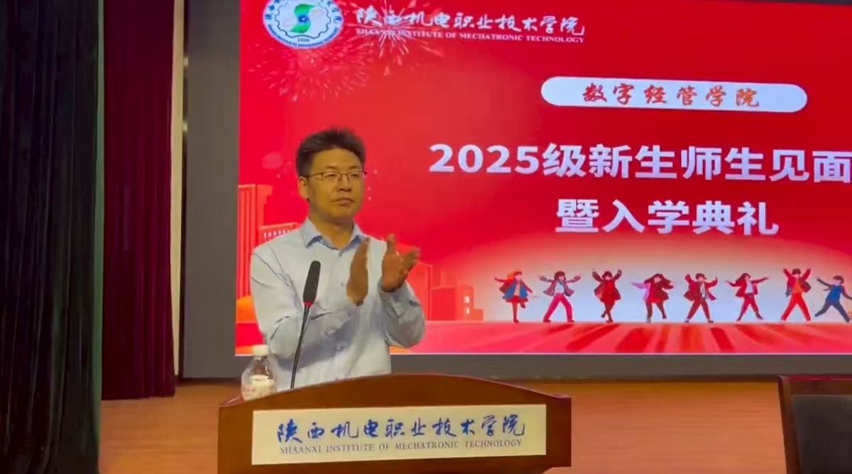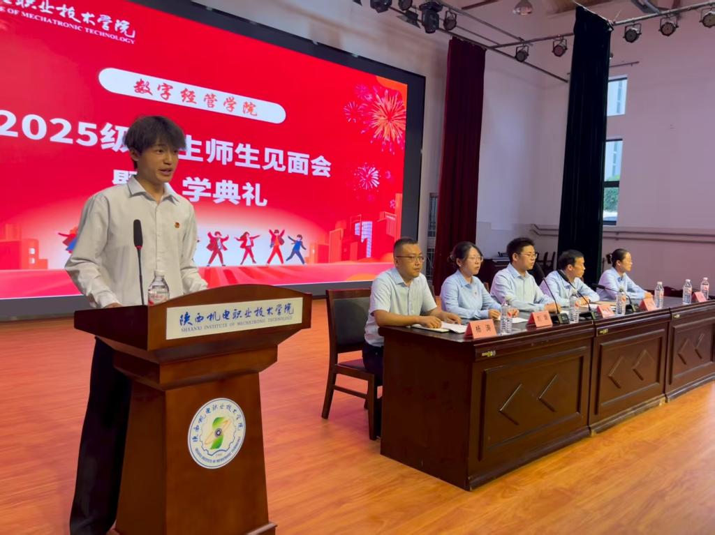 典礼上,杜海军首先代表学院致辞。他对2025级新生的到来表示热烈欢迎,简要介绍了bevictor伟德官网的专业建设、团队力量和人才培养成果。杜经理勉励同学们要树立远大理想、珍惜大学时光、夯实专业基础、锤炼综合能力,努力成长为适应数字经济时代发展的高素质技术技能人才。